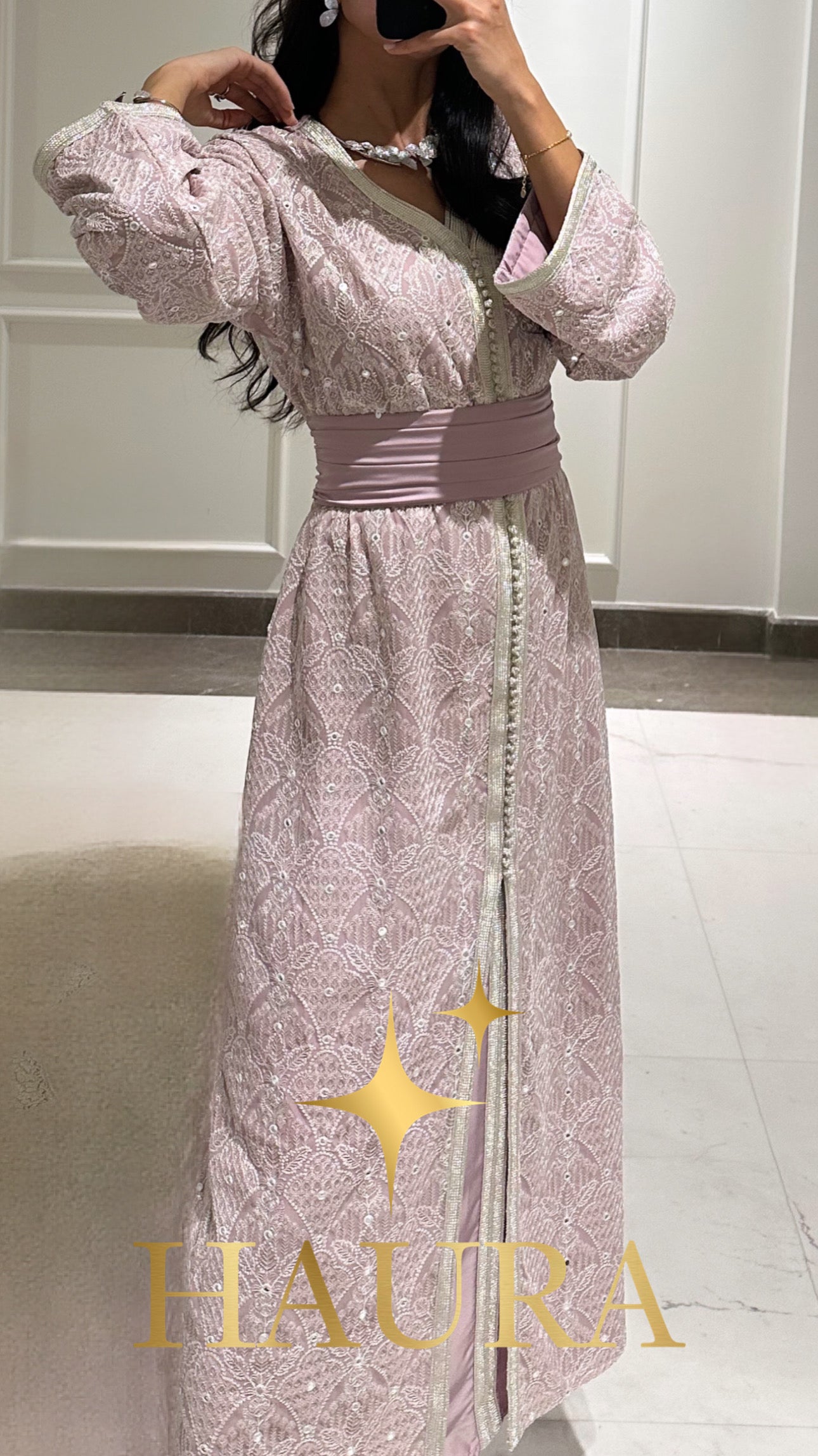 قفطان ملكي بتفاصيل مغربية أصيلة وقماش هندي حصري من توقيع HAURA.